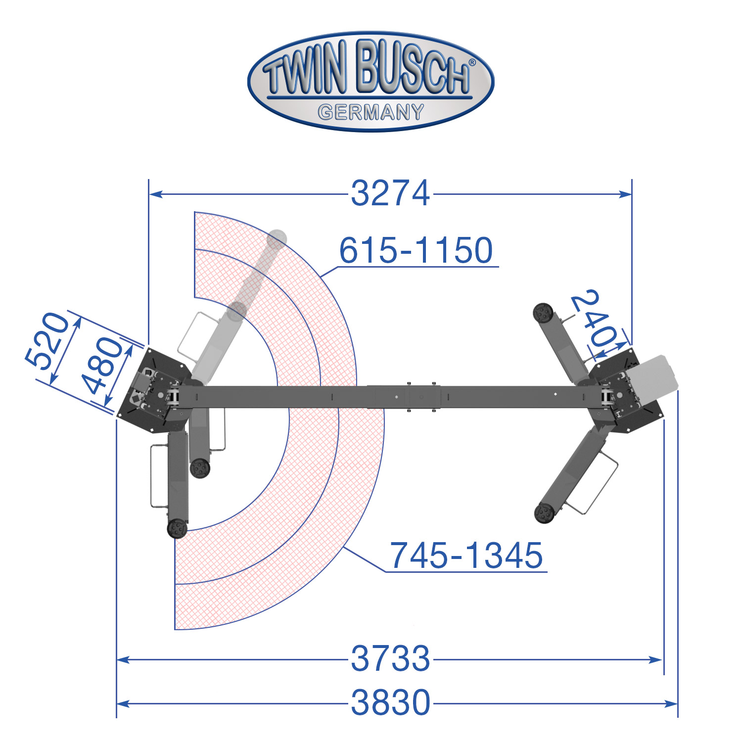 Dvosteberno dvigalo Comfort Line | 4,2t | sive barve | Twin Busch