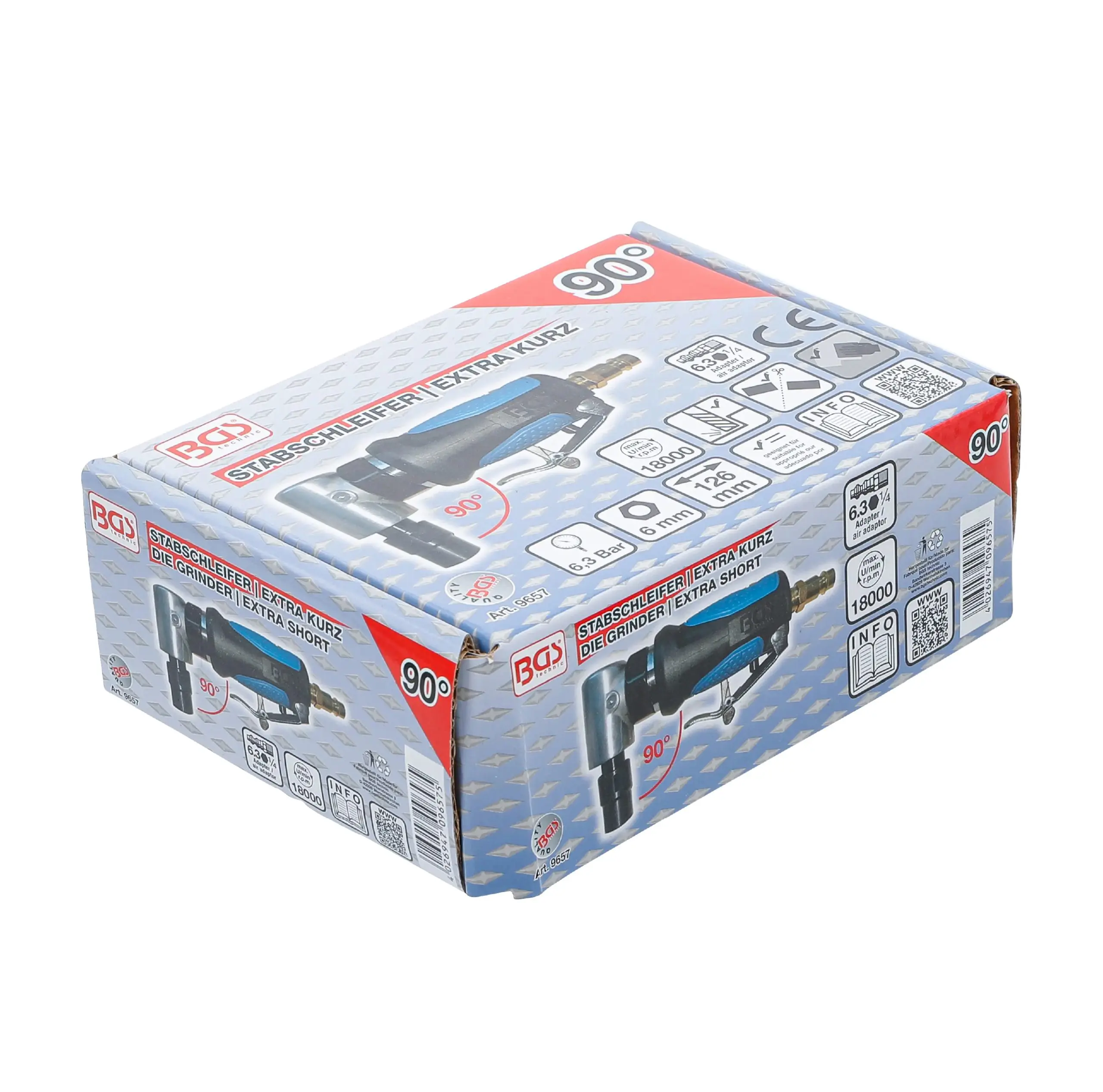 Pnevmatski palični brusilnik | ekstra kratek | 90° kot | 126 mm | BGS Technic