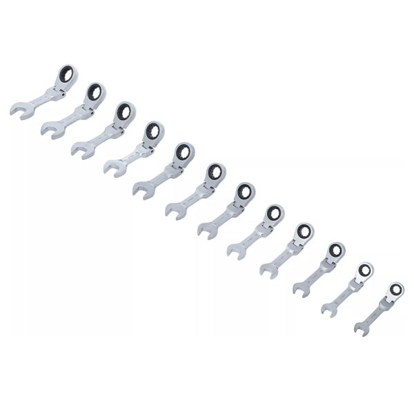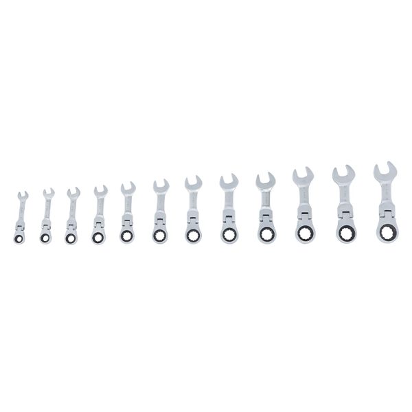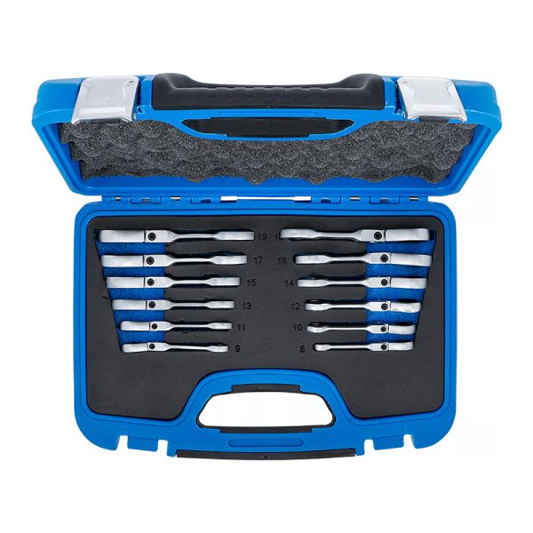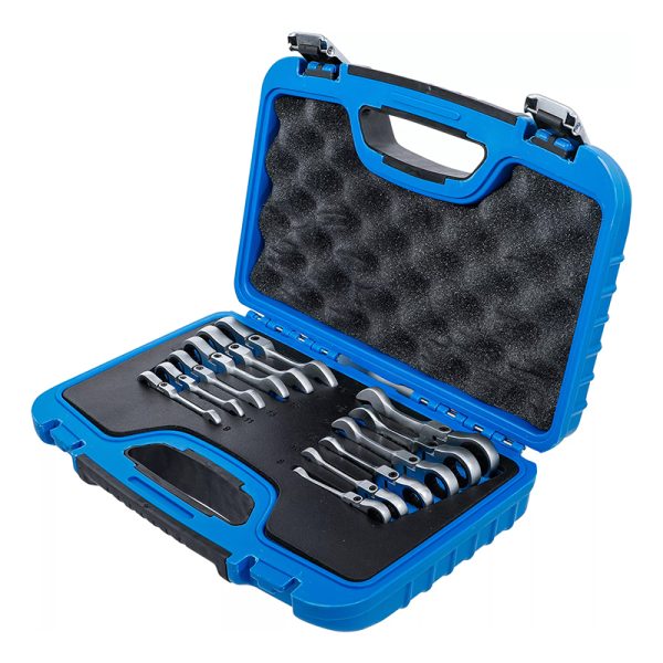 Obsežen komplet kombiniranih ključev z ragljo v kratki izvedbi.